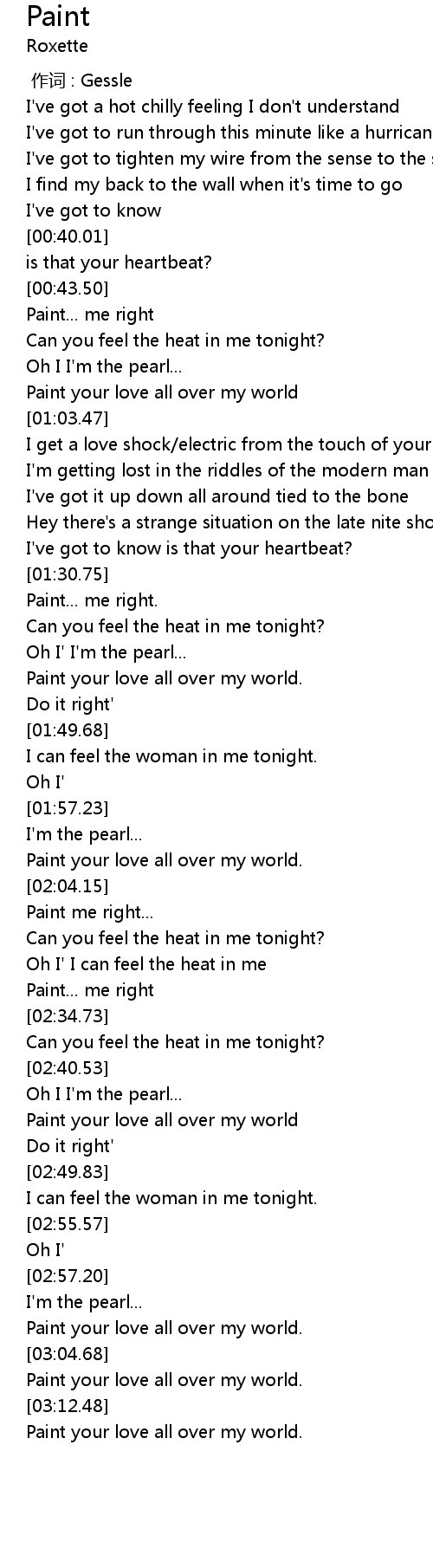| [01:23.87] | I've got to know is that your heartbeat? |
