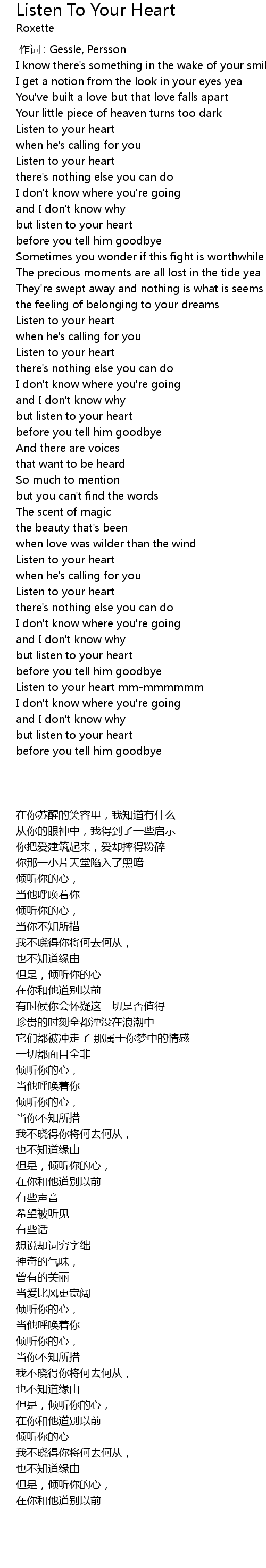 | [00:00.00] | 作词 : Gessle, Persson |