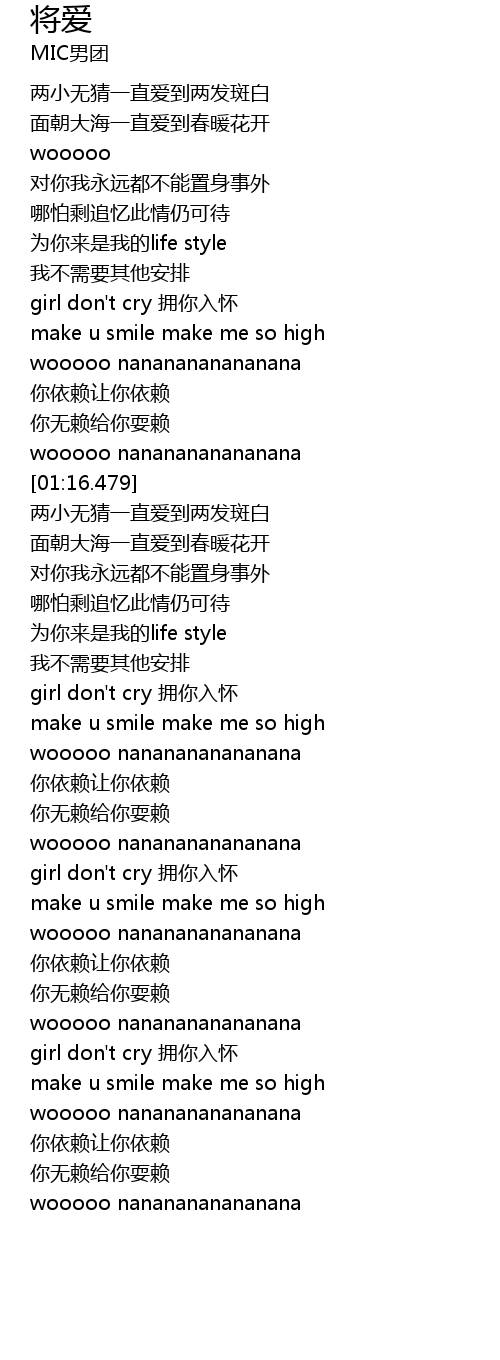| [00:05.379] | 两小无猜一直爱到两发斑白 |