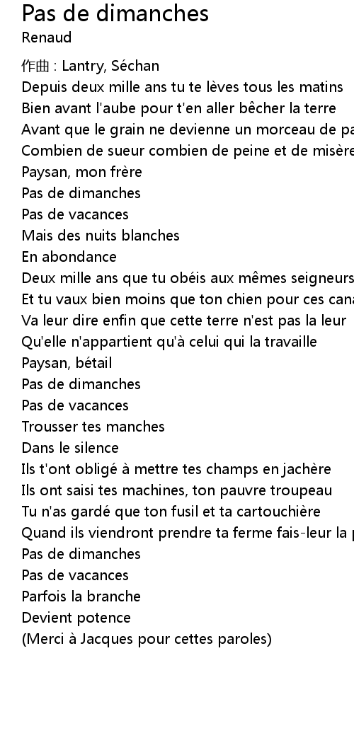 | 歌曲 | Pas de dimanches |