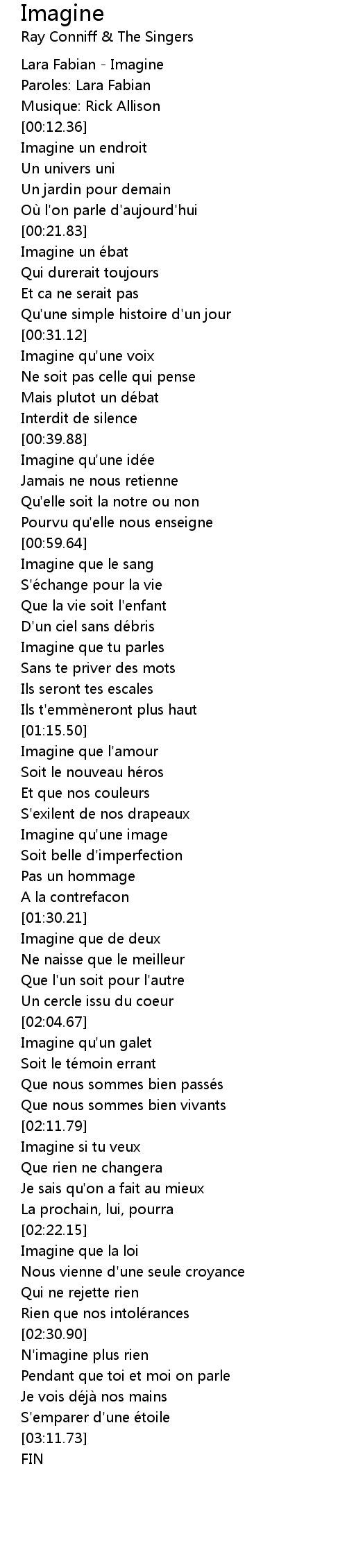 | [00:00.00] | Lara Fabian - Imagine |