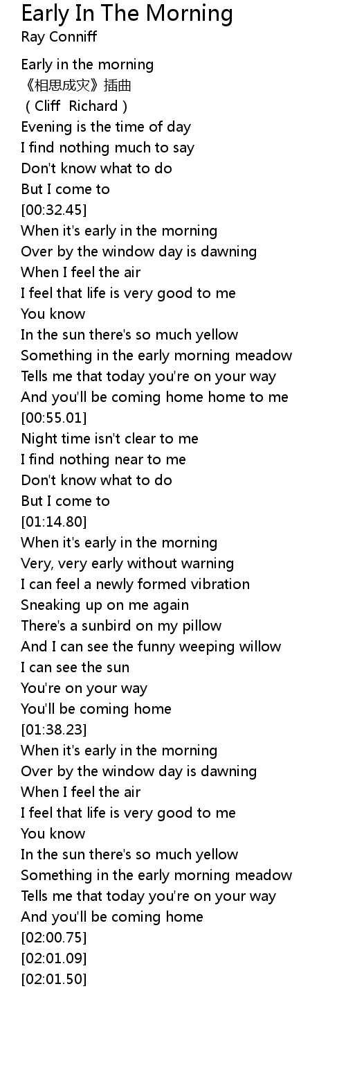 | [01:39.41] | When it' s early in the morning |