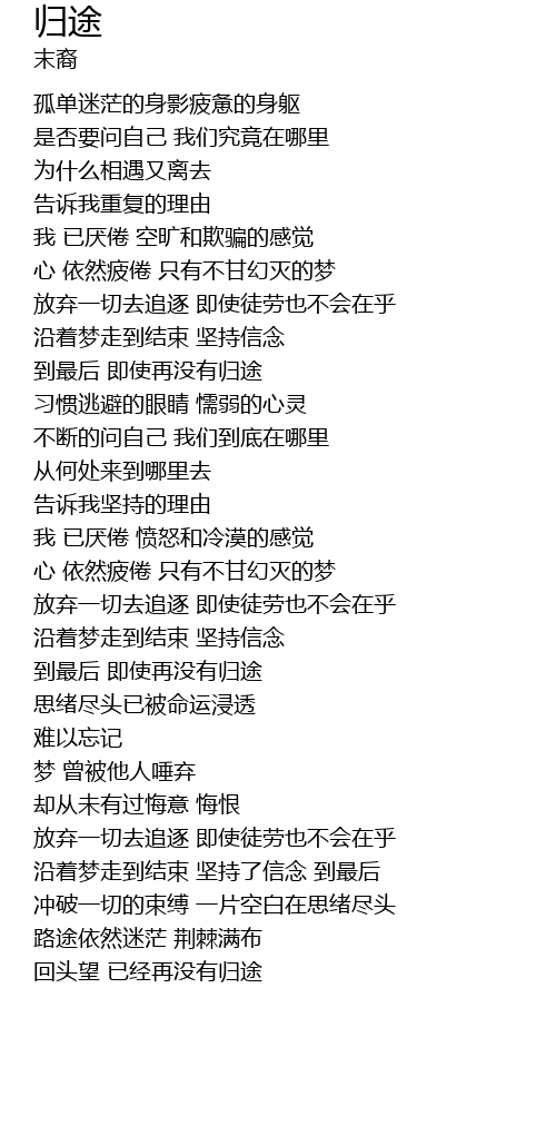 | [06:17.210] | 回头望 已经再没有归途 |