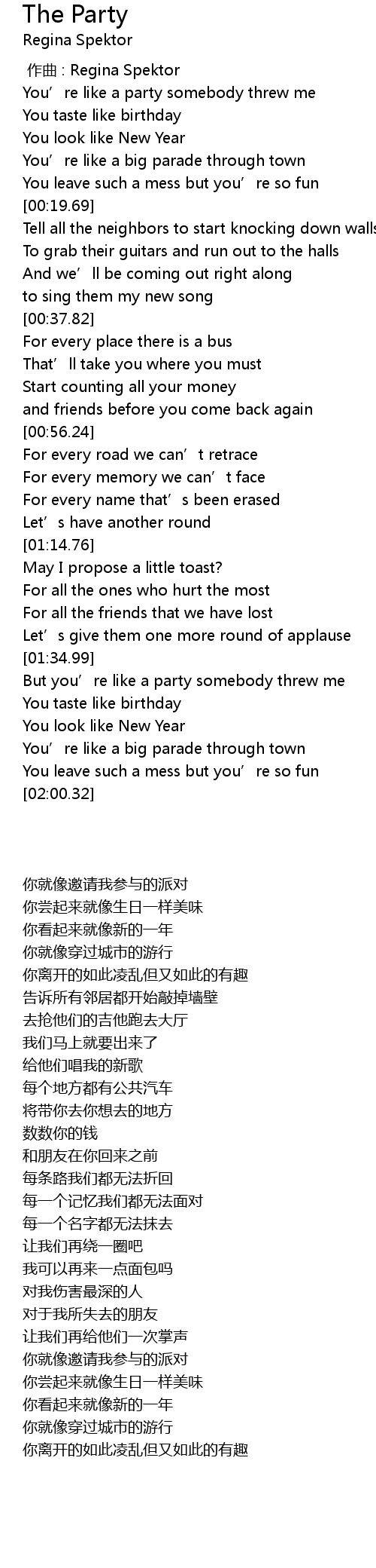 | [00:00.00] | 作曲 : Regina Spektor |