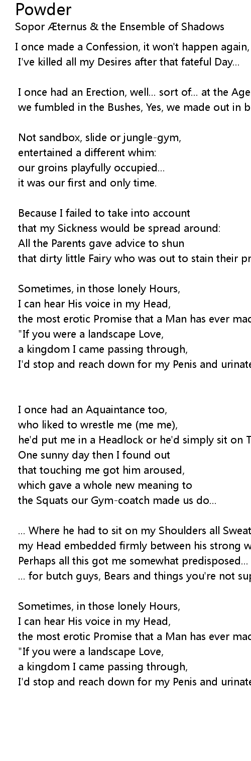 ... Where he had to sit on my Shoulders all Sweat & sighs, |
