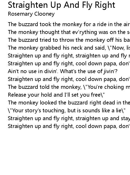 Straighten up and fly right, straighten up and stay right |
