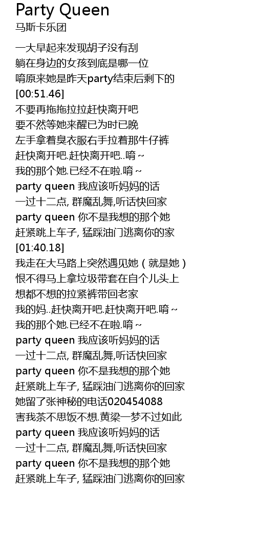 | [01:31.77] | party queen 你不是我想的那个她 |