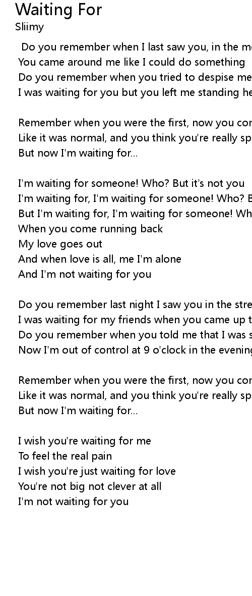 I'm waiting for, I'm waiting for someone! Who? But it's not you