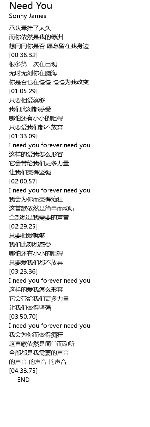 | [02:58.80] | zhǐ yào xiāng ài jiù gòu |