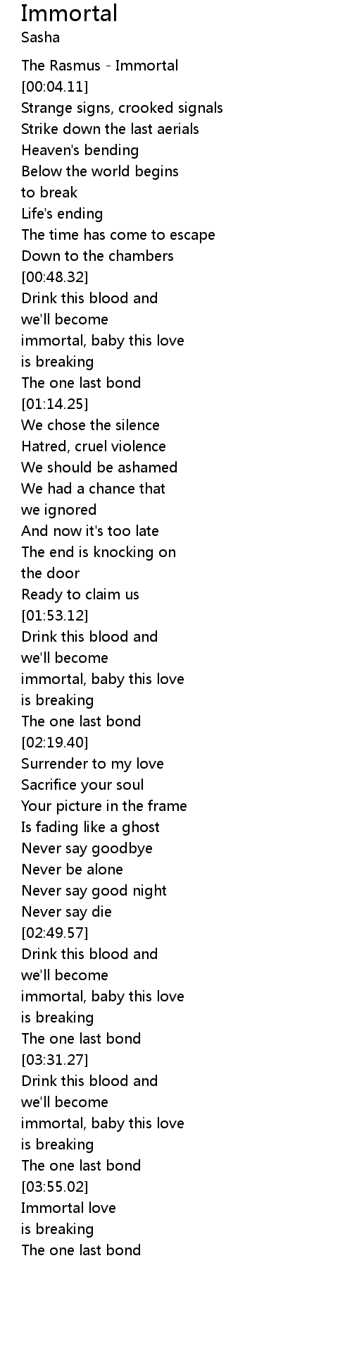 The Rasmus - Immortal |