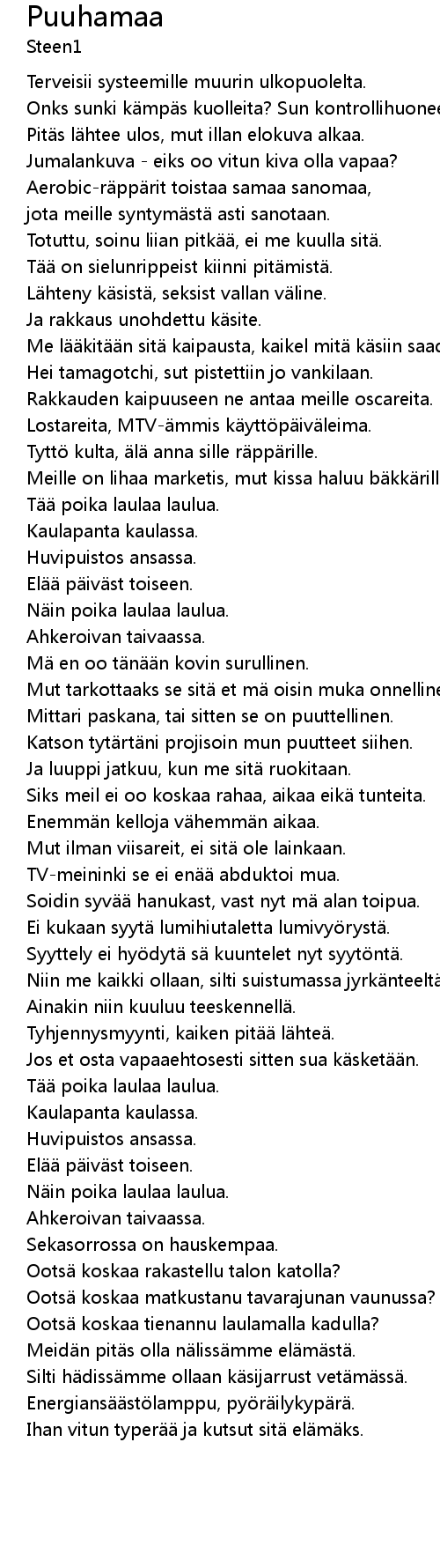 | Me l kit n sit kaipausta, kaikel mit k siin saadaan. | |