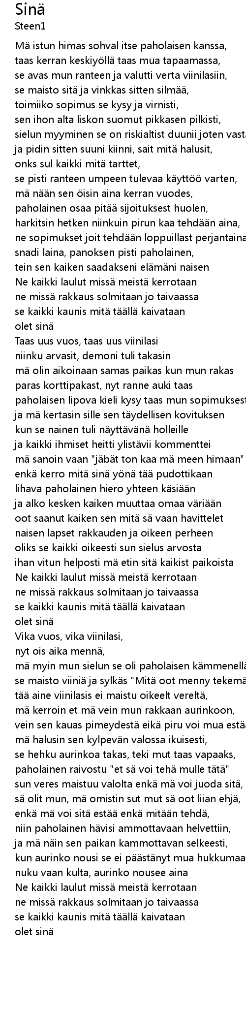 | 歌曲 | Sinä |