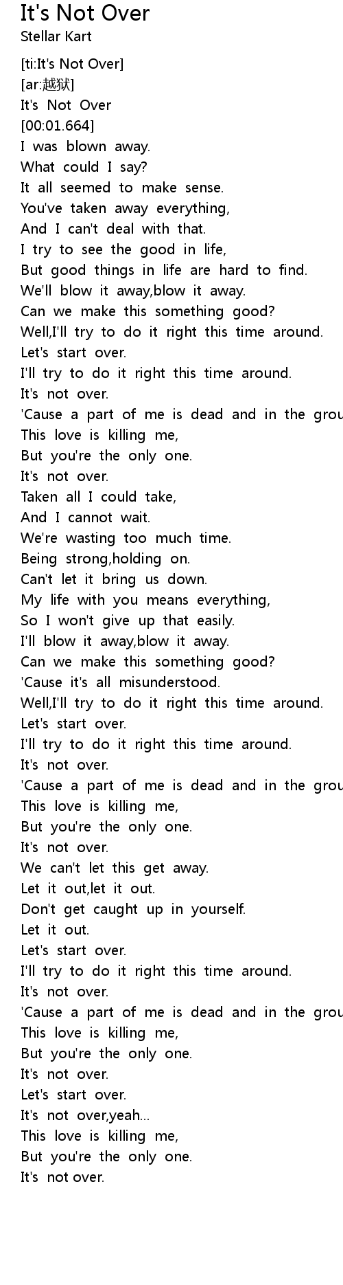 | [00:00.696] | It' s Not Over |