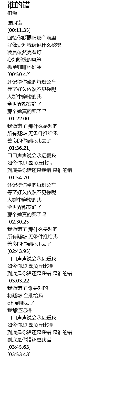 | [02:54.10] | dào dǐ shì nǐ cuò hái shì wǒ cuò shì shuí de cuò |