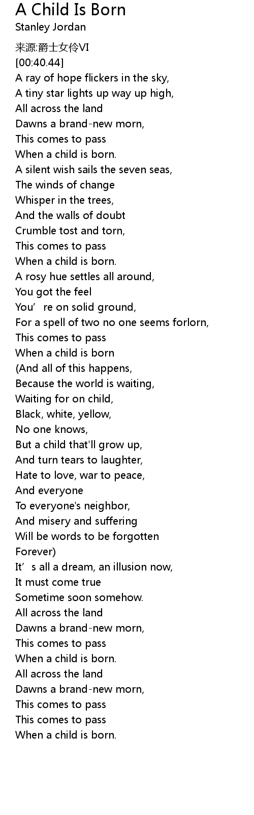 | 歌曲 | A Child Is Born |
