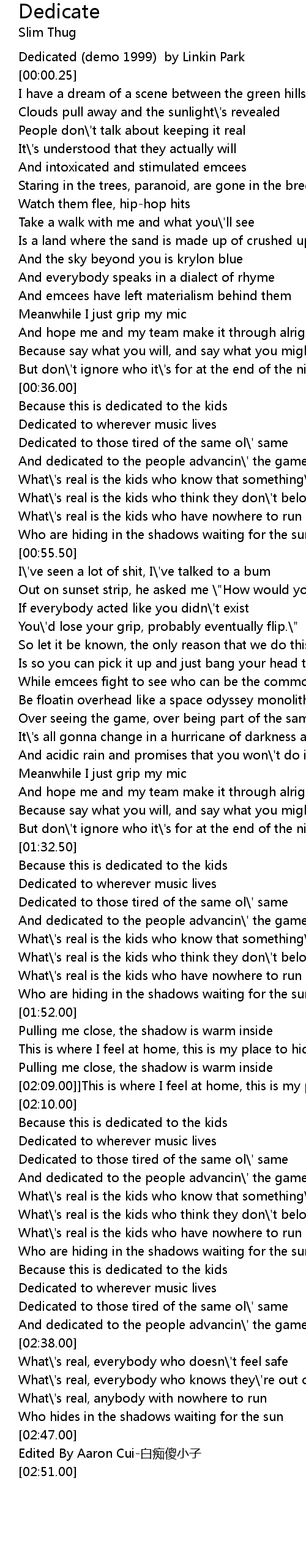 | [00:00.00] | Dedicated (demo 1999) by Linkin Park |