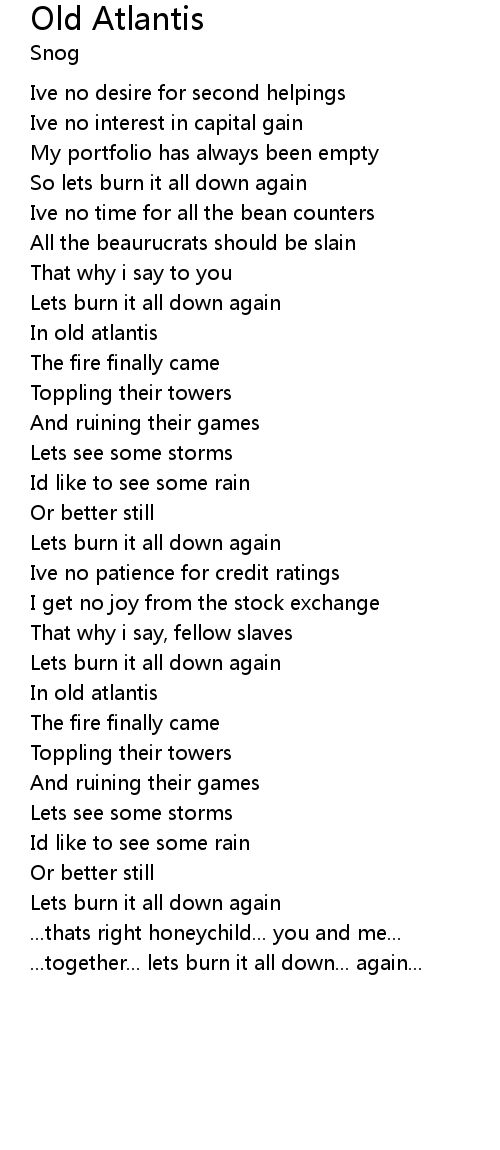 So lets burn it all down again |