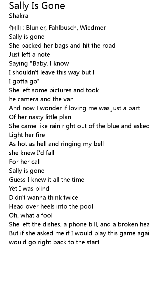 | Sally is gone | |