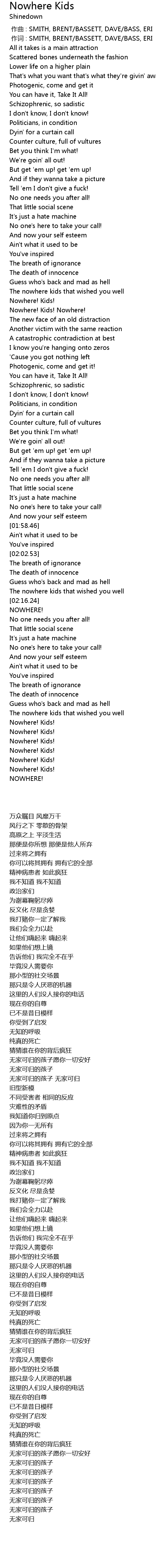 | [00:01.00] | 作词 : SMITH, BRENT/BASSETT, DAVE/BASS, ERI |