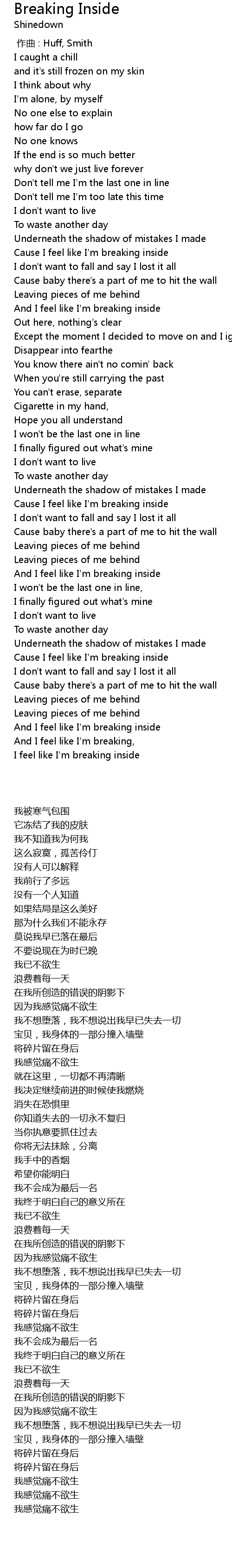 | [02:54.300] | Cause I feel like I' m breaking inside |