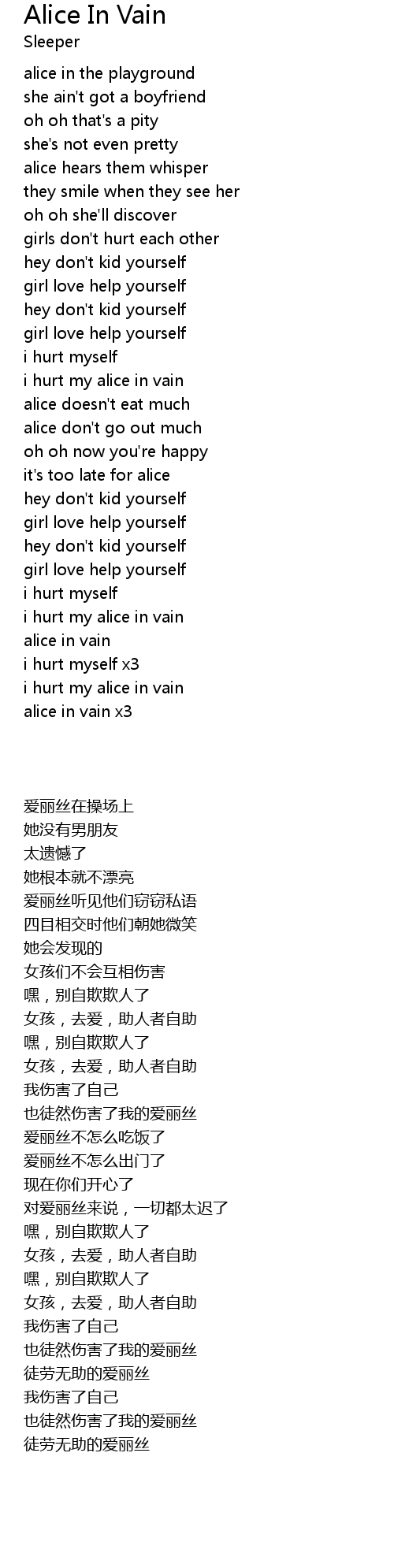 i hurt my alice in vain |
