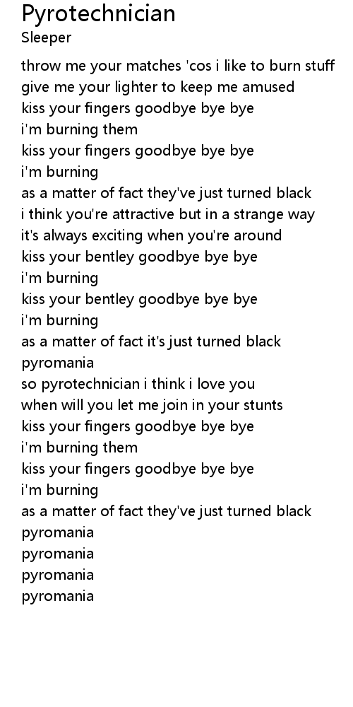 | [00:13.73] | throw me your matches 'cos i like to burn stuff |