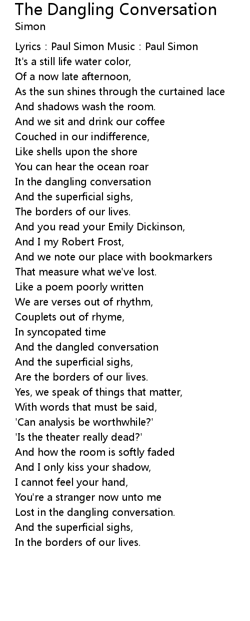 | In the dangling conversation | |