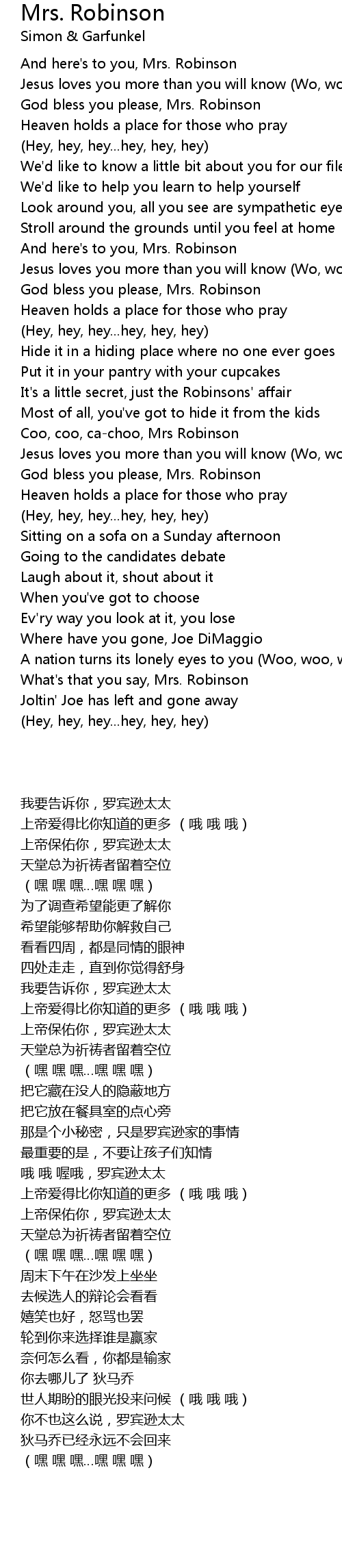 Coo, coo, ca-choo, Mrs Robinson |