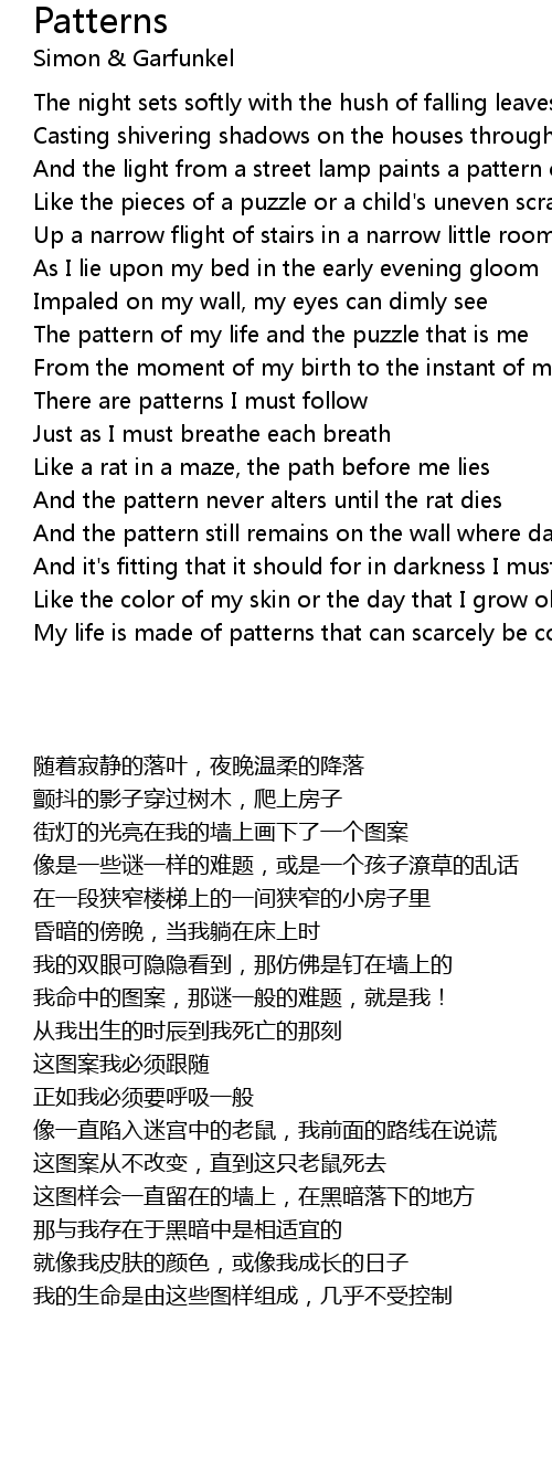 My life is made of patterns that can scarcely be controlled |