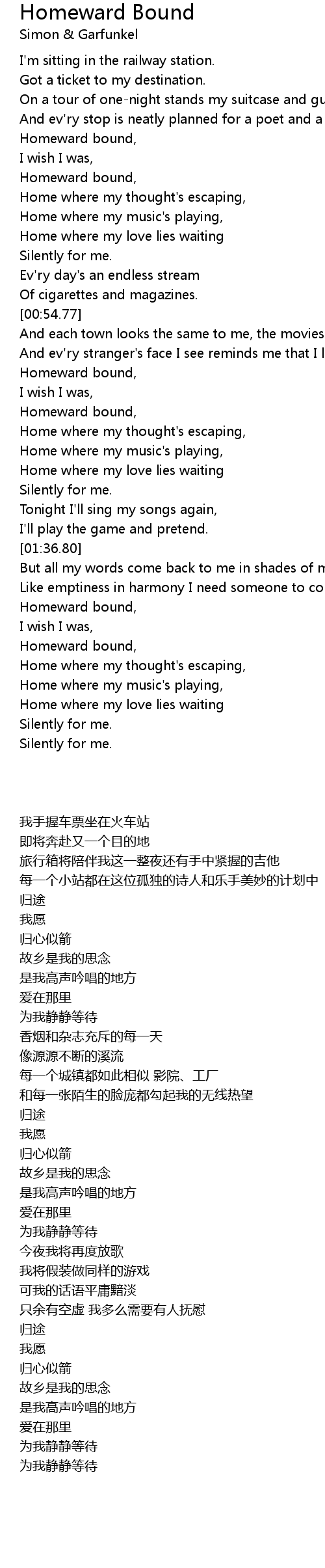 [01:03.74] And ev'ry stranger's face I see reminds me that I long to be,