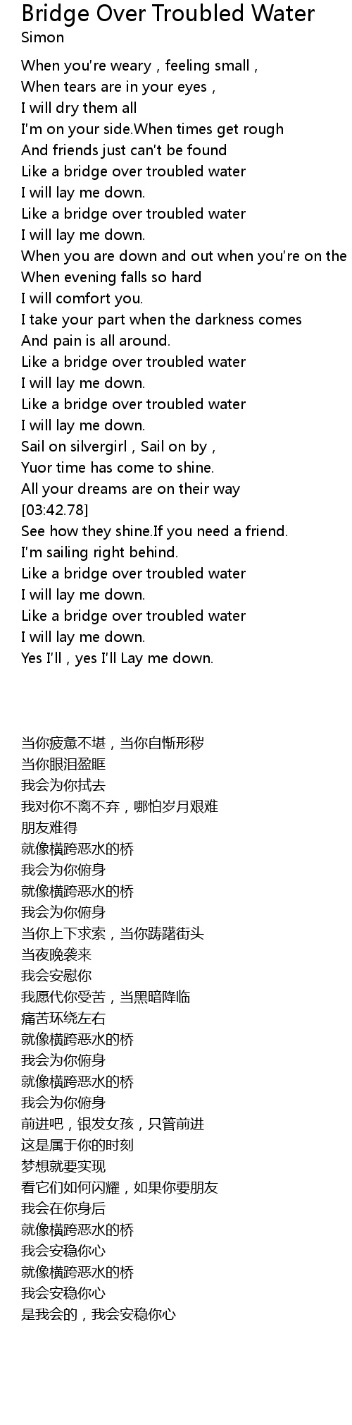| [00:22.80] | 当你疲惫不堪,当你自惭形秽 |
