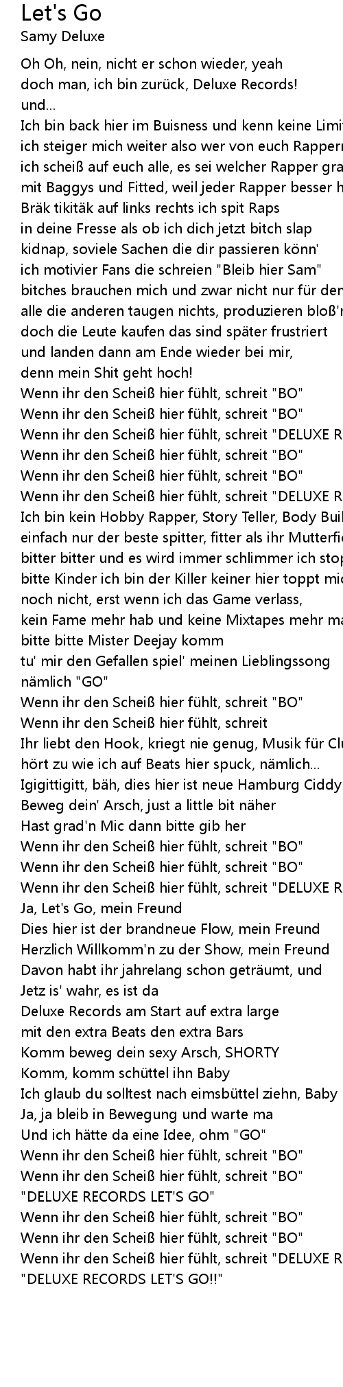 | Wenn ihr den Schei hier fü hlt, schreit " DELUXE RECORDS LET' S GO" | |