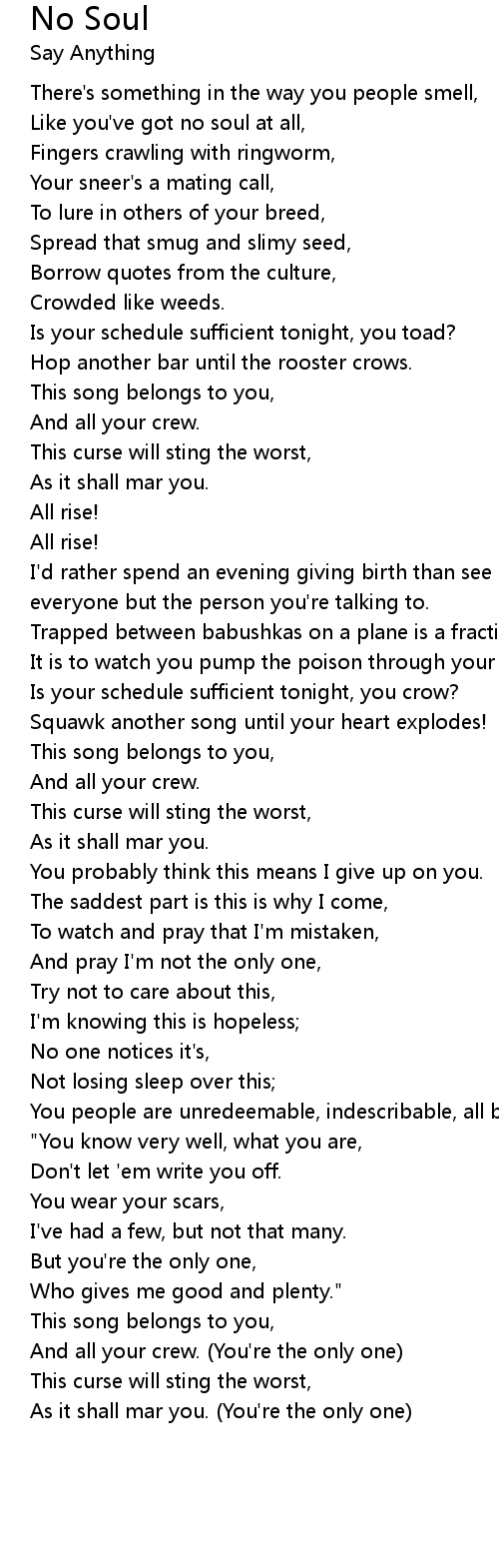 Like you've got no soul at all, |