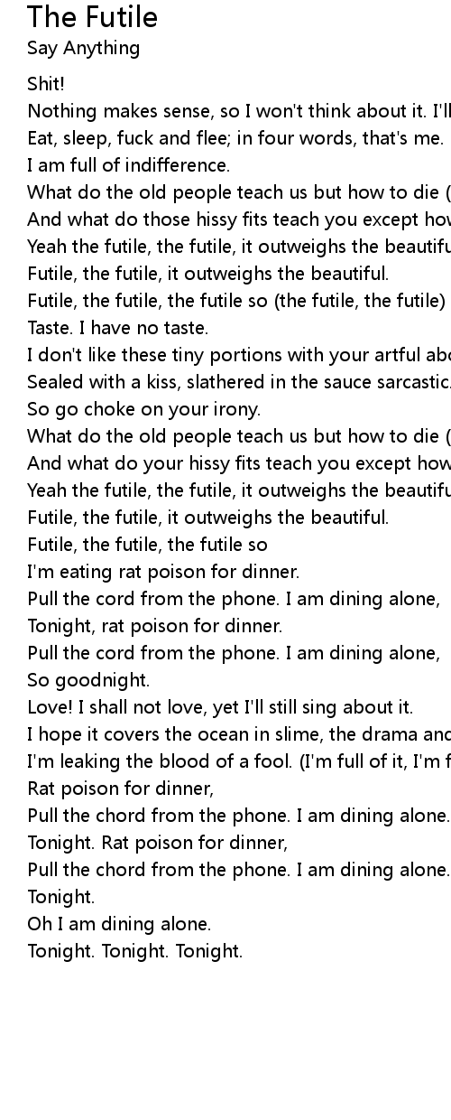 Yeah the futile, the futile, it outweighs the beautiful. |