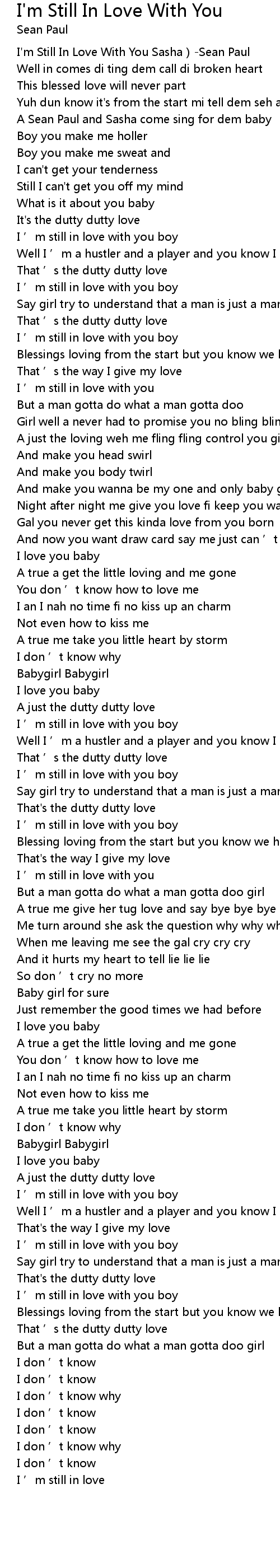 | [00:00.80] | I' m Still In Love With You Sasha Sean Paul |
