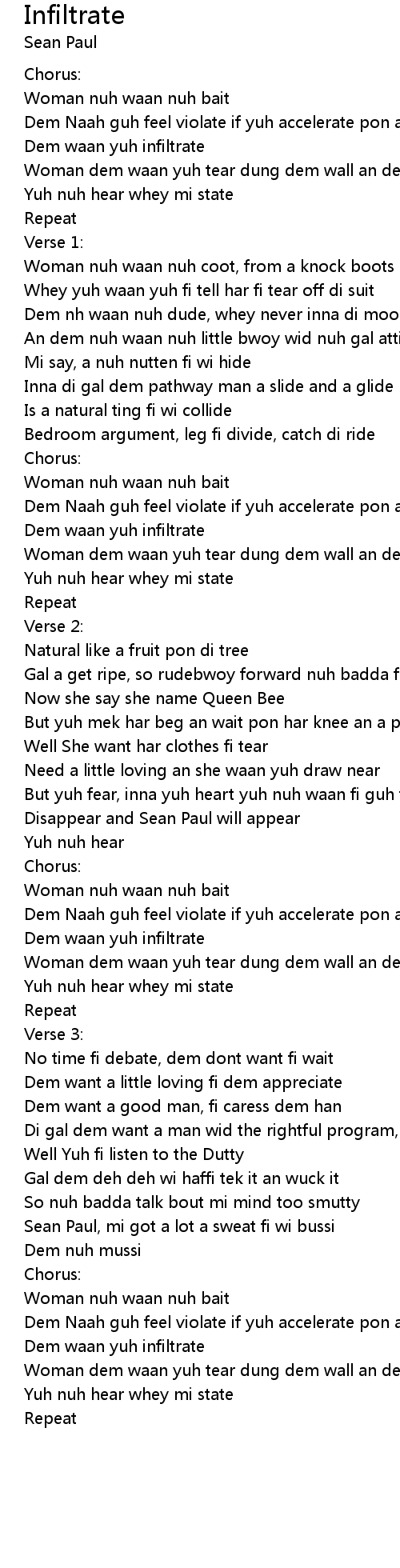 Sean Paul, mi got a lot a sweat fi wi bussi |