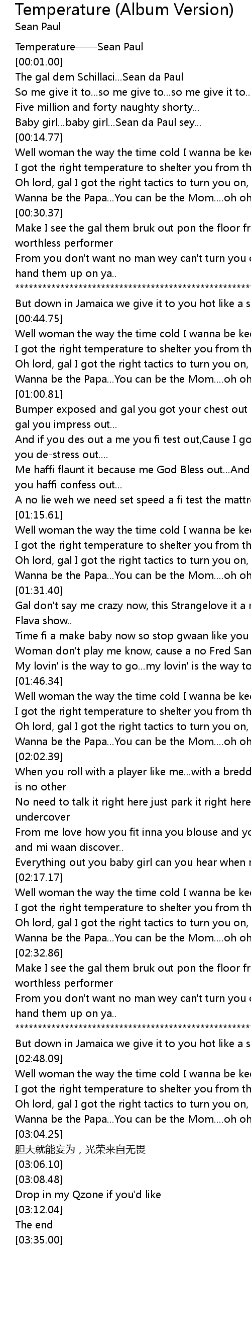 | [00:00.00] | Temperature——Sean Paul |