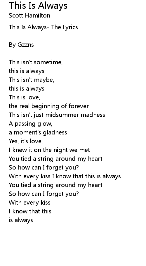 | This Is Always- The Lyrics | |