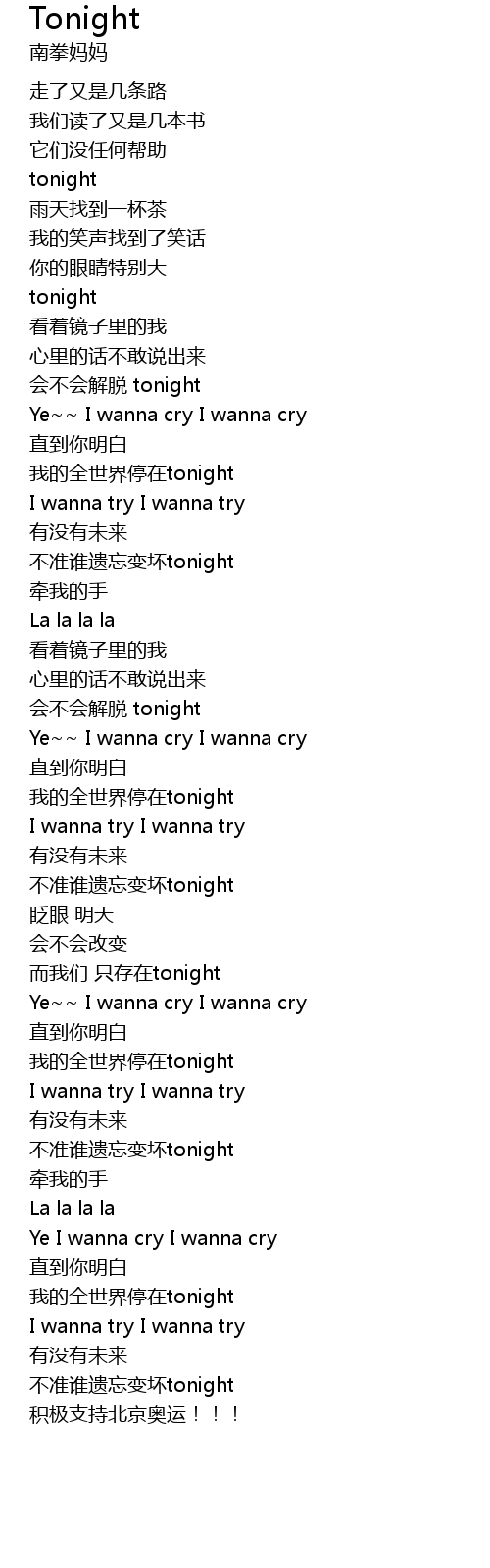 | [00:53.79] | Ye~~ I wanna cry I wanna cry |