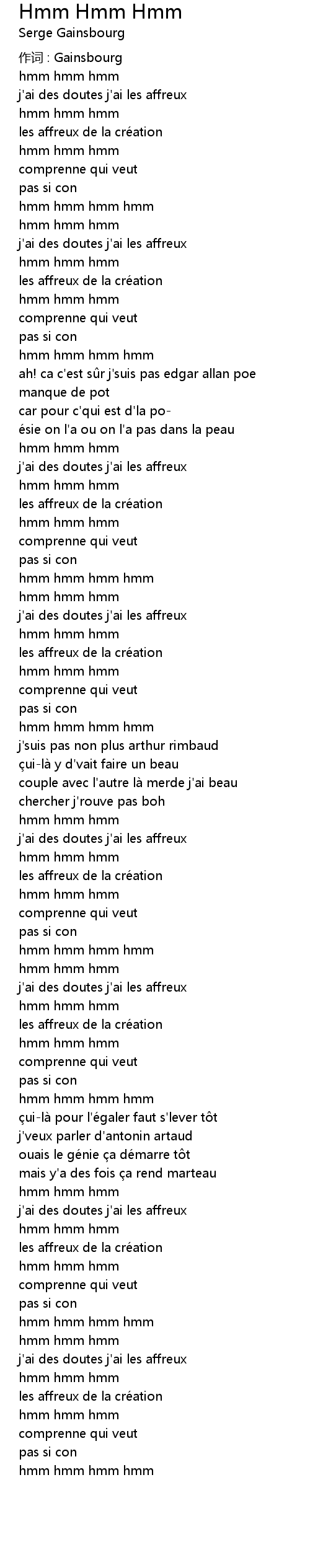 | 作词 : Gainsbourg | |