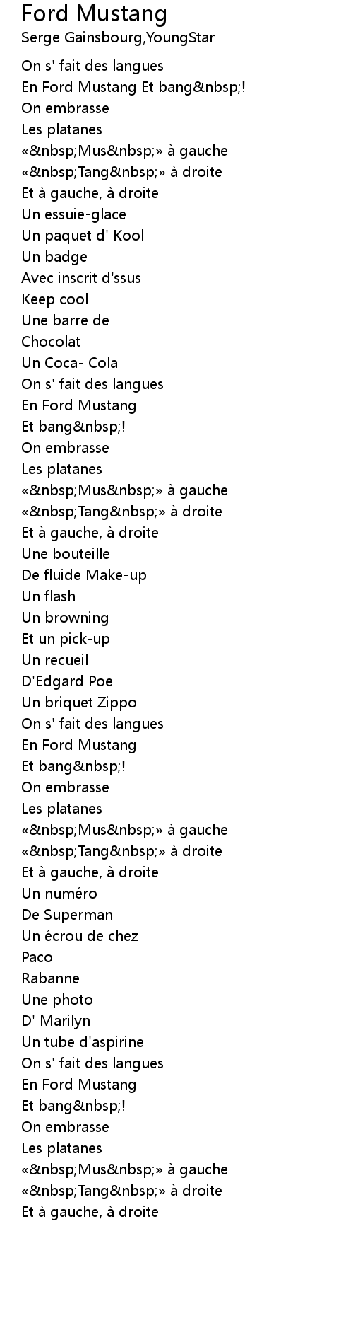 | 歌曲 | Ford Mustang |