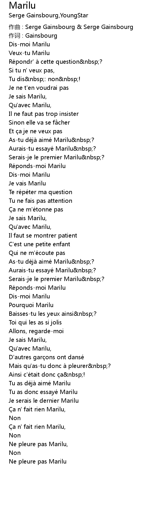 | 作词 : Gainsbourg | |