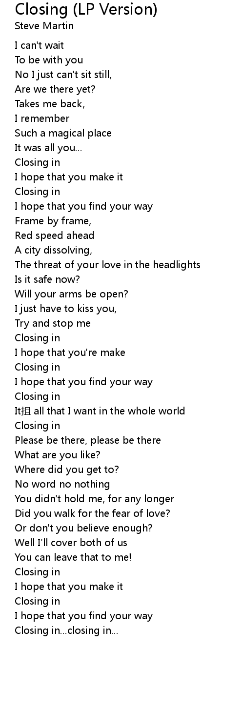 | 歌曲 | Closing (LP Version) |