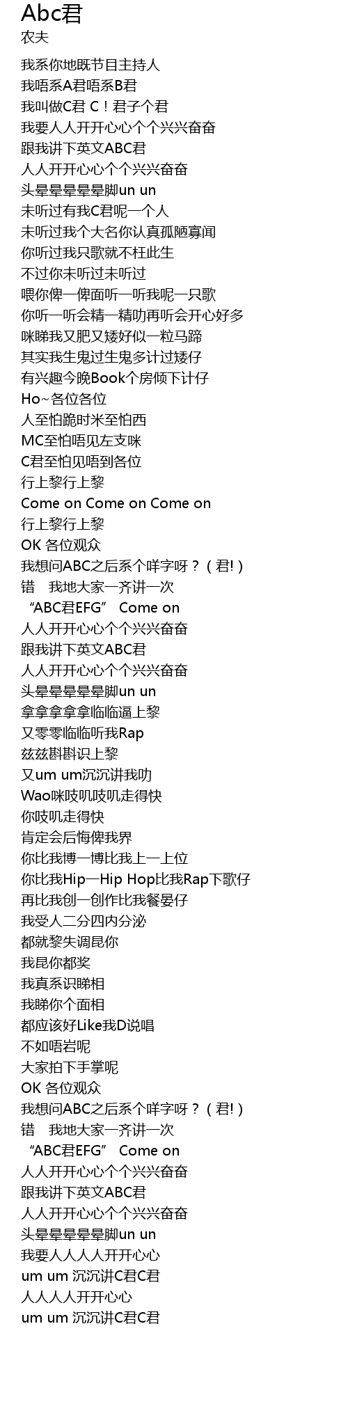 | [01:20.320] | “ABC君EFG” Come on |