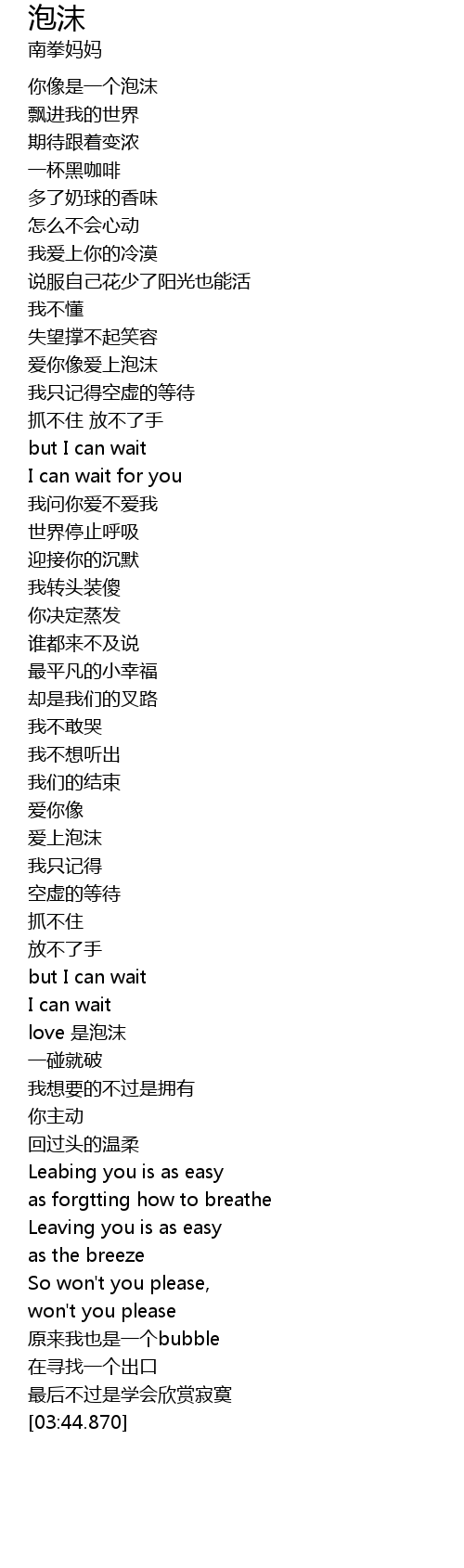 | [03:07.030] | 原来我也是一个bubble |