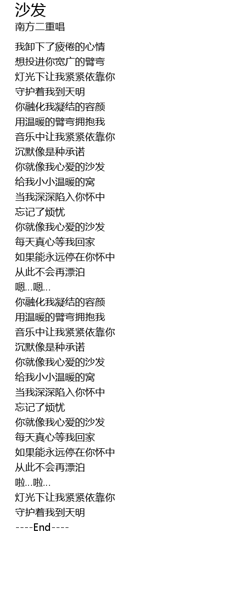 | [02:36.59] | 你就像我心爱的沙发 |