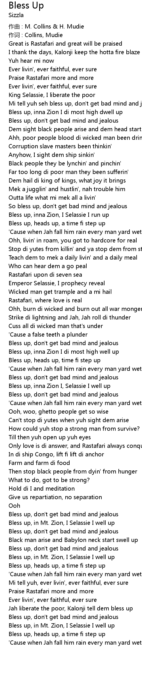 | Bless up, in Mt. Zion, I Selassie I well up | |