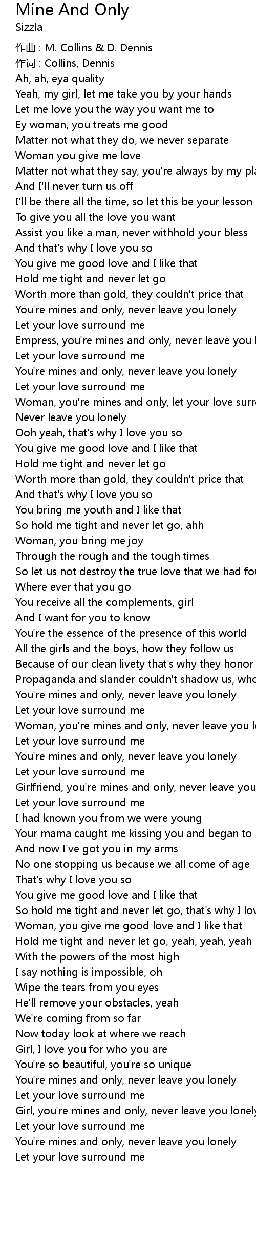 | Girlfriend, you' re mines and only, never leave you lonely | |