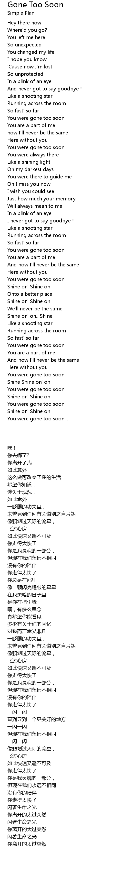 You were gone too soon |