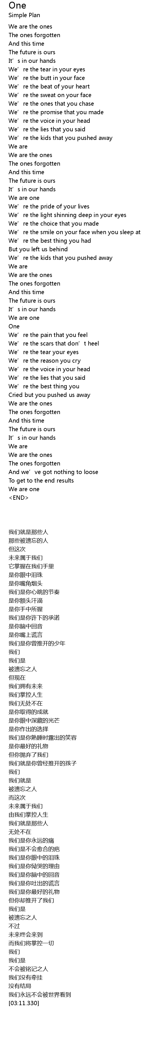 | [03:05.900] | We are one |